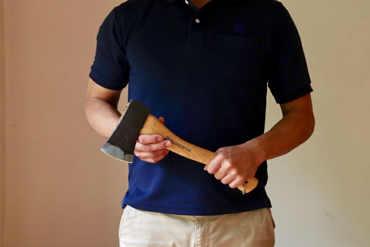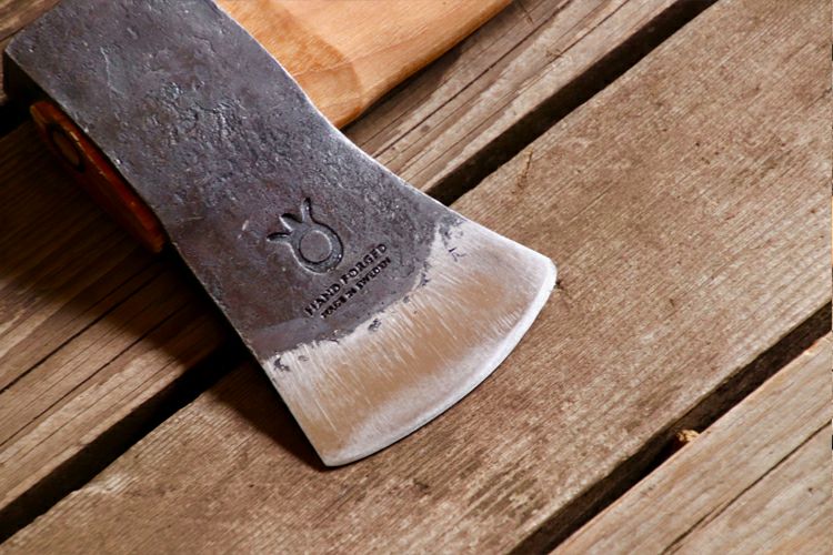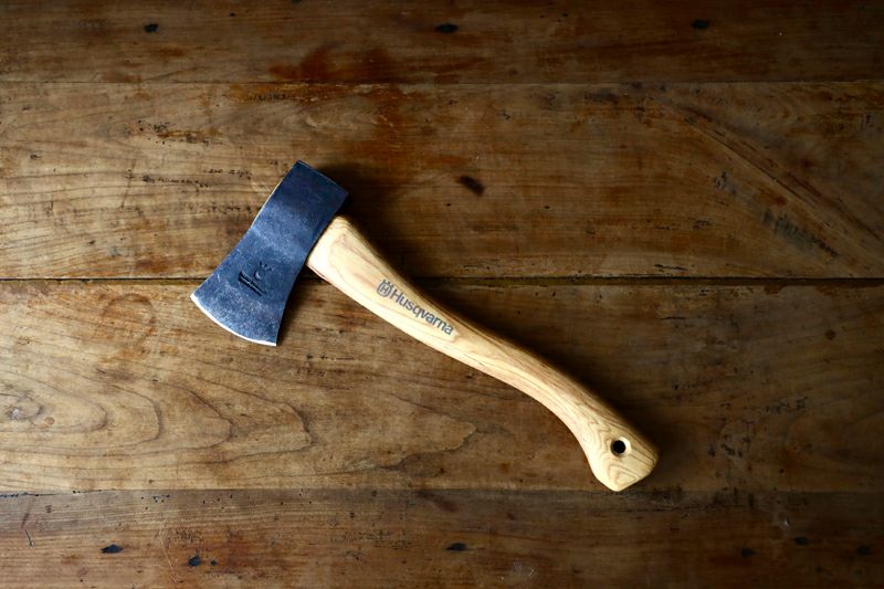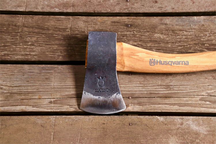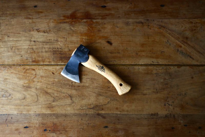 小型ながらもナイフのような切れ味。存在感のある斧は焚き付け作りや枝払いなどが小さな動きで楽にできます。