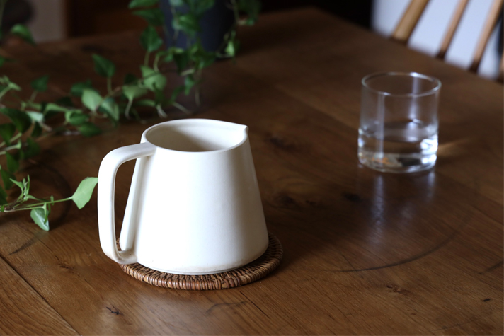きめ細やかな乳白色の陶土を使用した陶器のマグ&ポット。鉄分が豊富に含まれたその土地ならではの焼きものは遠赤外線効果のゆっくりした熱伝導と相まっていつものコーヒーやお茶、白湯でさえも格別にしてくれます。