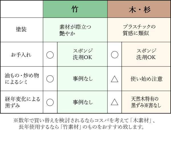 使い始めにウレタン塗装特有のにおいを感じる場合がありますが、時間の経過とともに薄れてまいりますので、安心してお使いください。