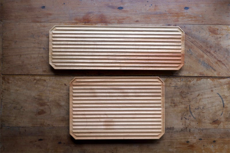 反りが起こった場合は、縁が持ち上がっている面を裏にして水平な場所で一晩置いてください。それでも収まらない場合は縁が持ち上がっている面をよく絞った布巾で拭くなどして少し湿らせ、再びその面を下にして様子を見てください。年月を経るごとにそる頻度は低くなり落ち着いてきます。
