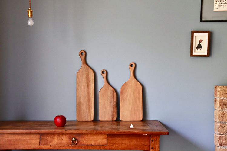 折れてしまった街路樹を用い、友人2人で木工製品を作ったことから始まったメーカーHAMPSON WOODS(ハンプソンウッズ)。材料の調達を含めた配慮ある小ロット生産にこだわり、デザインと製作を行っています。素材自体の美しさに耳をすます彼らが熟考した有機的なフォルムは使うほどに手に馴染み、その美しさはキッチンに凛とした風を吹かせてくれます。