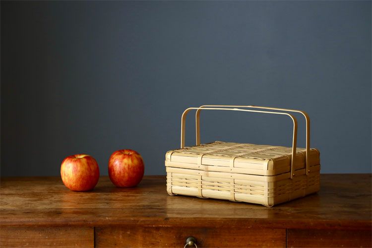 白竹の弁当かご (蝶番)