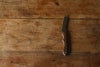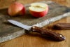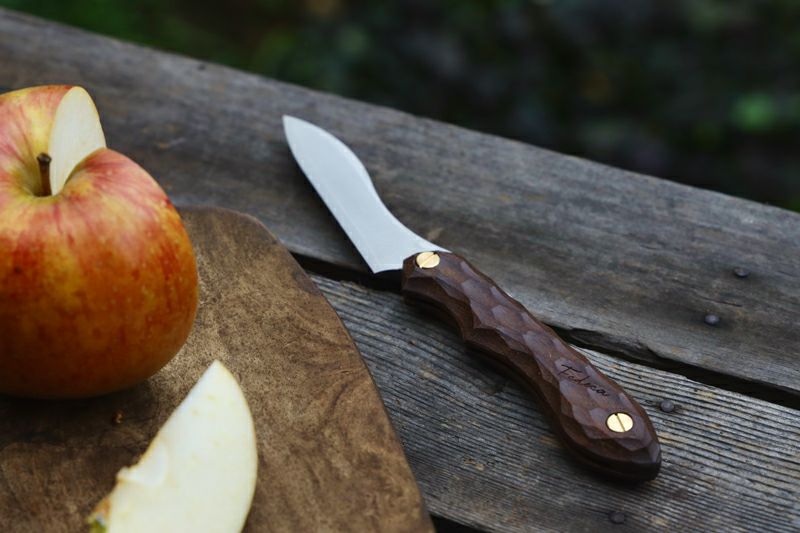 ナイフの柄はイペ材を使用しております。ひとつひとつ木目の表情や色味が異なりますが天然木の風合いとしてお楽しみください。
