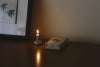 炎の周辺、特に上部には十分な空間をとり、ろうそくの大きさに応じた不燃性燭台で垂直に立ててください。